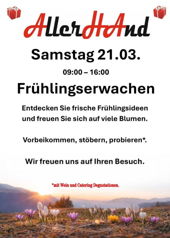 Der Frühling erwacht im AllerHAnd. Viele blumige Überraschungen, Wein und Catering-Degustation.