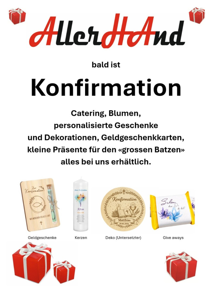 Ob ein Trinkglas mit Namen und Konfirmationsdatum, ein graviertes Holzschild als bleibende Dekoration oder eine personalisierte Tasse für den Morgen danach – bei uns wird jeder Gegenstand zur persönlichen Erinnerung. Mit hochwertiger Lasergravur und professionellem Sublimationsdruck veredeln wir Ihre Geschenkidee mit dem Namen, einem Bibelvers, einem Datum oder einer herzlichen Botschaft.